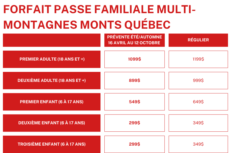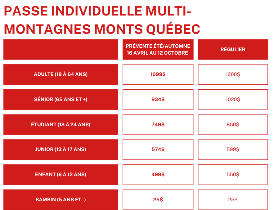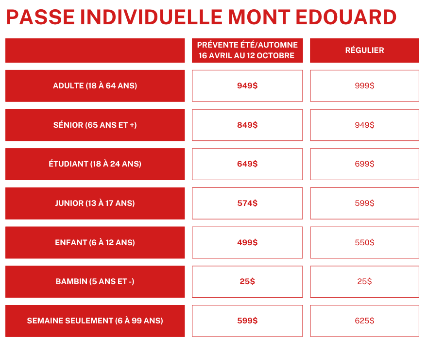 ** Il n’y a pas de rabais de prévente sur ce produit et le prix est unique pour toutes les catégories d’âge.