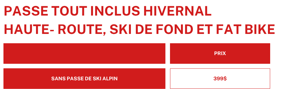 VOTRE PASSE TOUT INCLUS VOUS DONNE DROIT À UN ACCÈS ILLIMITÉ À LA HAUTE-ROUTE, LE SKI DE FOND ET LE FATBIKE.