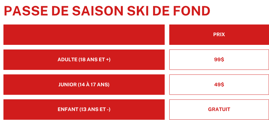 *** Rappel que le ski de fond est inclus avec la passe de saison de ski alpin.